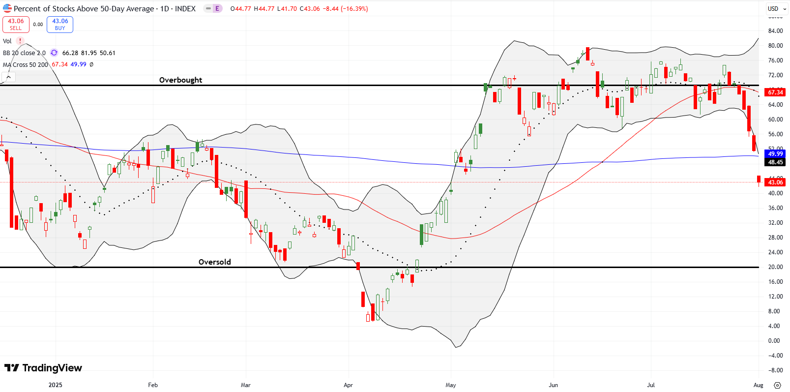 • AT50 (MMFI) = 43.1% of stocks are trading above their respective 50-day moving averages