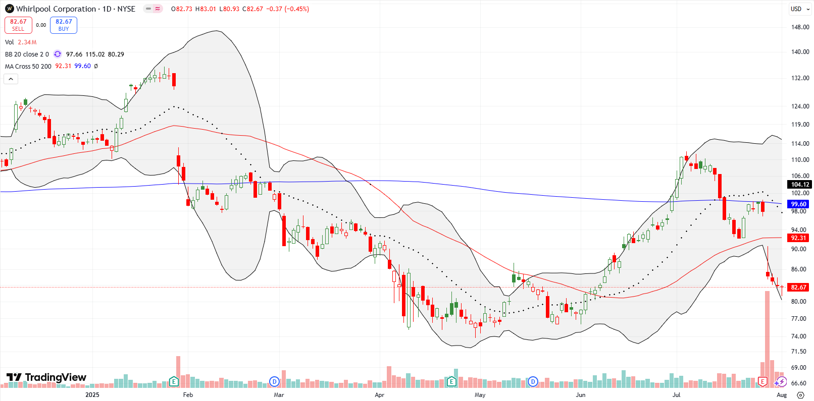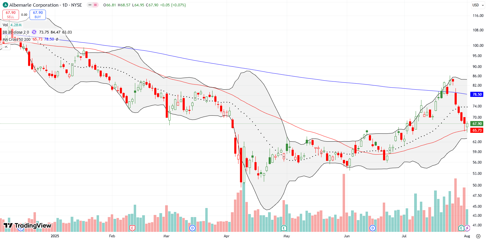 Albemarle Corp (ALB) broke down below its 200DMA, steadily declining through earnings. ALB is now trying to hold 50DMA support. I will add shares on a higher close.