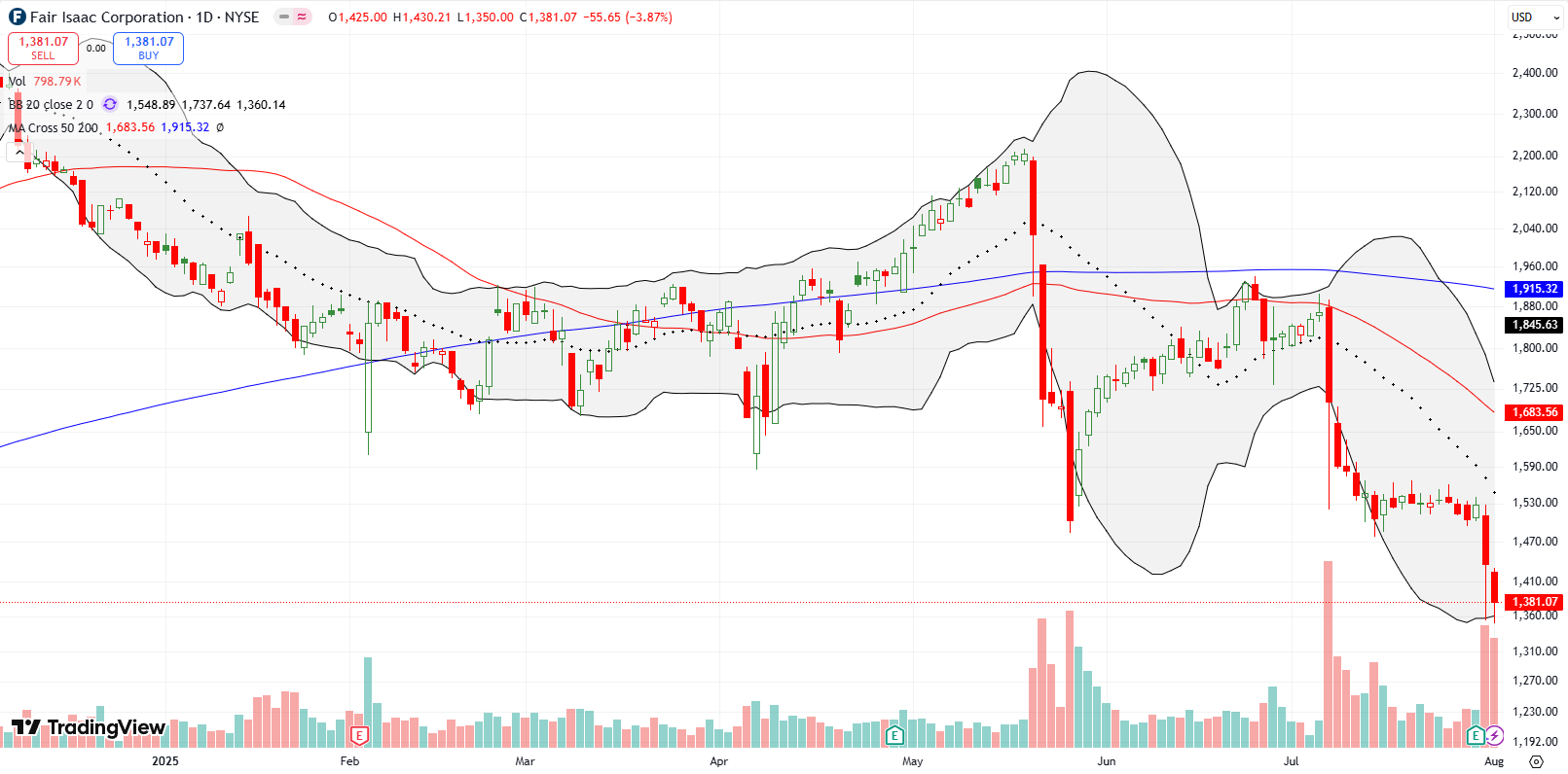 Technical status: FICO lost 6% post earnings and another 4%, breaking down to a 52-week low.