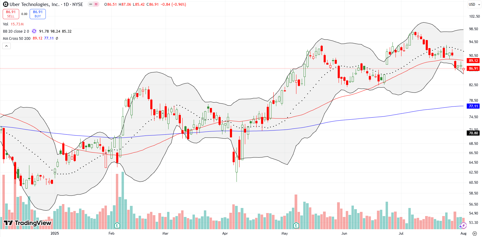 Technical status: UBER broke down below its 50DMA and remains technically bearish, but longer-term support levels still matter.