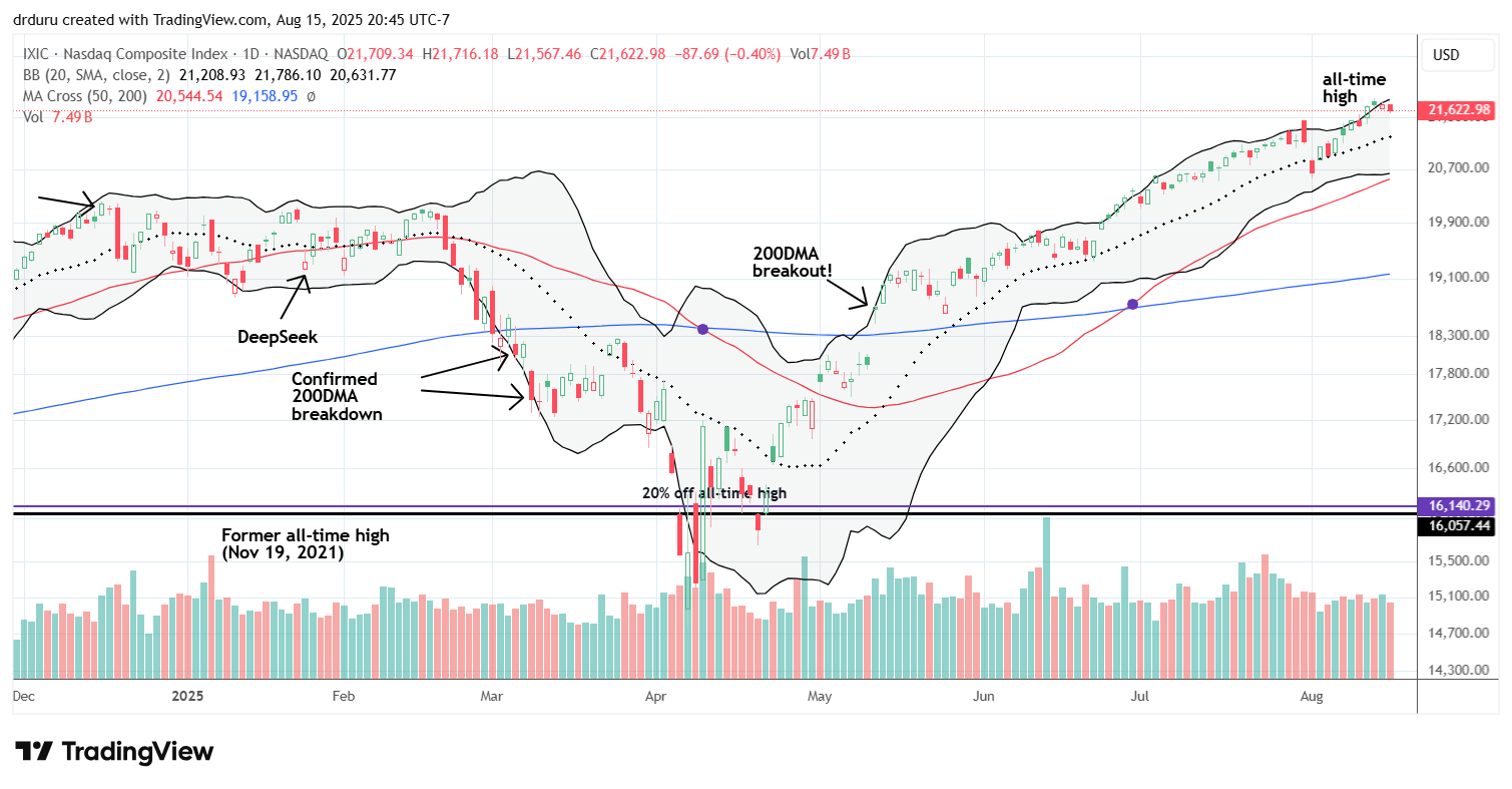 In the individual charts below, I show compelling cases of buy-every-dip mentality. I informally noticed a pattern this week of buyers stepping into stocks right at or just above 200DMA support on any drawdown. Where stocks managed to gap below 200DMA support, buy interest was not nearly as strong. In the coming weeks I will be looking for more evidence for the persistence of this buying pattern.