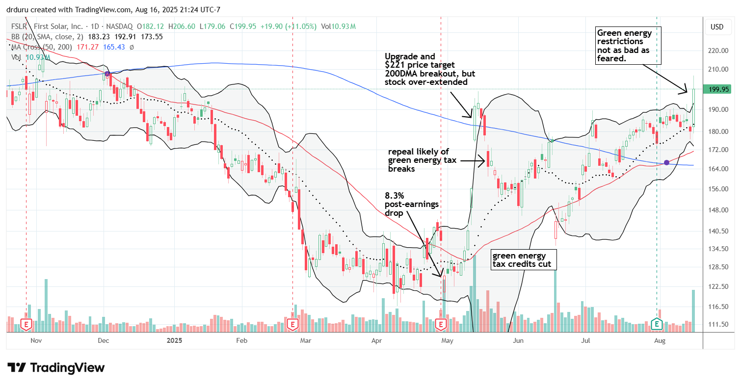 Trade commentary: I like FSLR long-term and thought the current administration’s anti green energy stances would give me a chance to load up on FSLR at much cheaper prices. Instead, I may have to chase FSLR a bit as a contrarian buy looks less and less likely anytime soon. This is another lesson in buying sell-offs driven by Trump’s rhetoric and policies in anticipation of an eventual rebound or reversal – a type of Trump Trade.