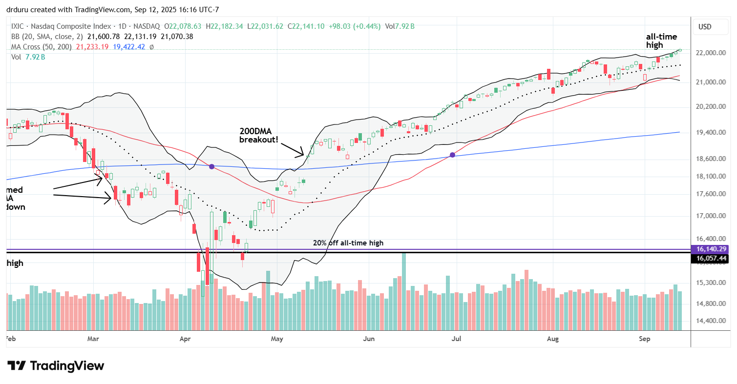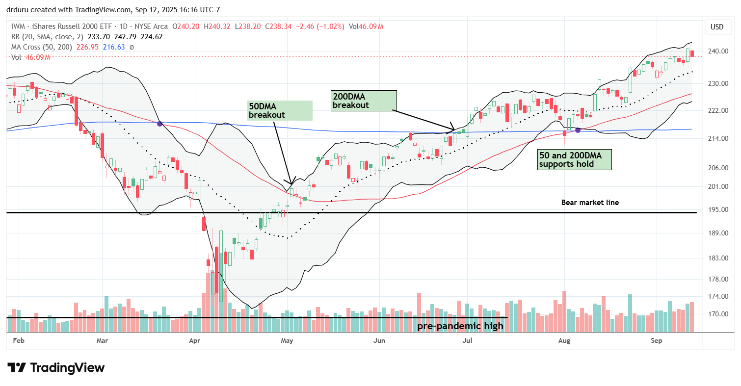 The stock market leaned into a melt-up as a constant stream of IPOs signaled risk-on appetite even as a massive downward revisions in jobs in the 12 months through March, 2025 implied more than expected economic weakness ahead. Rate cuts beckon as a result of this broadening weakness, and Wall Street has chosen the positive side of the ledger. The market was not even fazed by an inflation report showing stronger pricing pressures in the economy. Thus, I see heightened uncertainty surrounding the immediate aftermath of the coming rate cuts. The current melt-up is likely pricing in a lot of good news from rate cuts. The presumed minimal margin for error could easily generate a sell-the-news reaction concomitant with September’s reputation as one of the most dangerous months of the year. On the positive side, the current stability in market breadth maintains a bullish undertone to the market.