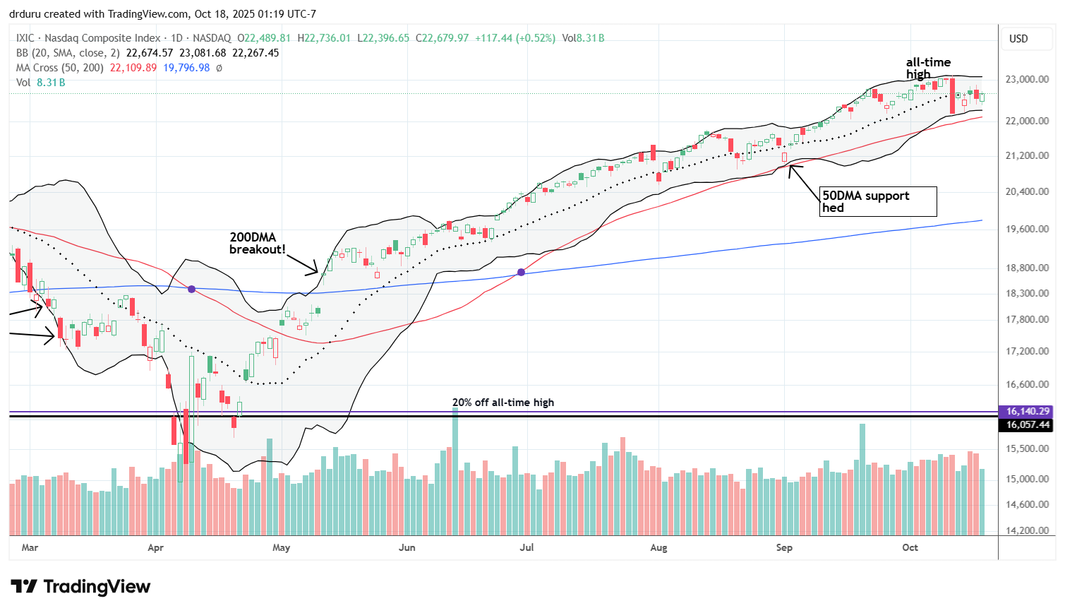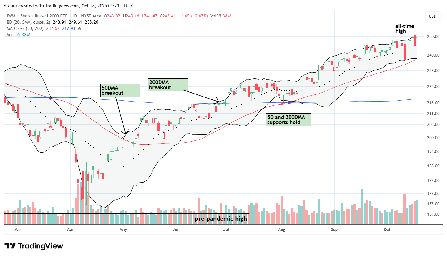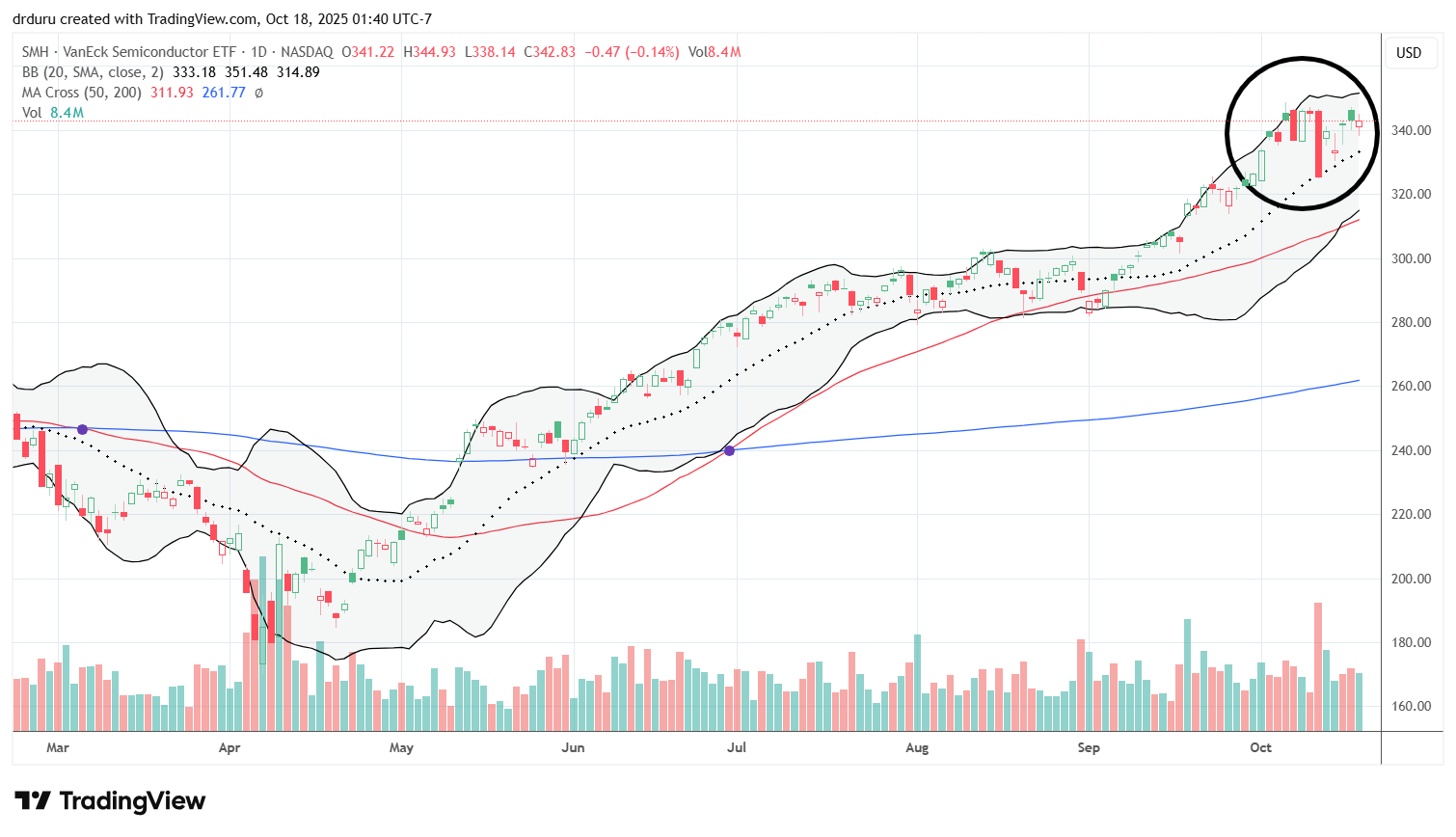 Trade commentary: I am not trading FXI but use it as a barometer for how bilateral tensions affect both U.S. and Chinese equities. Notice how the 50DMA supported FXI since the April tariff drama, trauma, and noise until the latest convulsions. I see poetry in the immediate rebound to a pivot around the 50DMA.