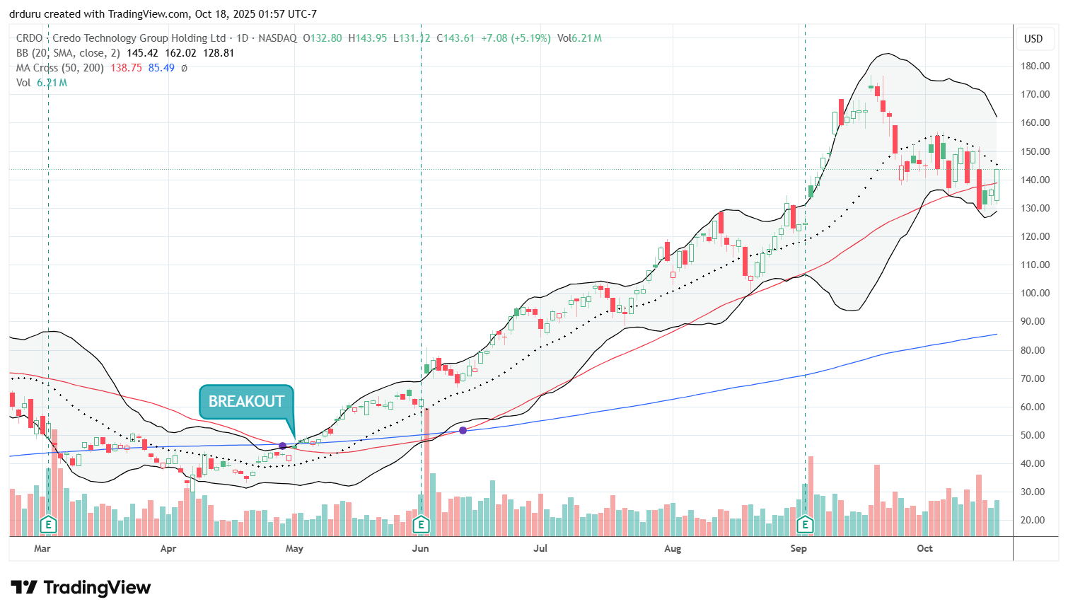 Technical status: CRDO has struggled under its 20DMA after topping earlier this year. It’s now pivoting around its 50DMA.