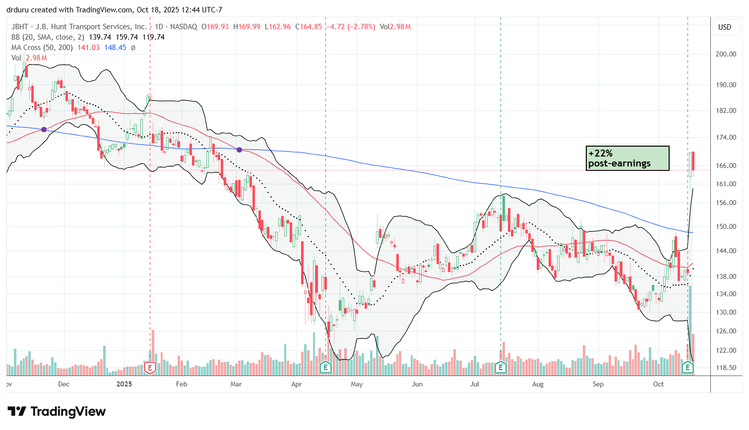 Technical status: JBHT surged 22% on strong earnings, breaking out of a 20-month long downtrend.