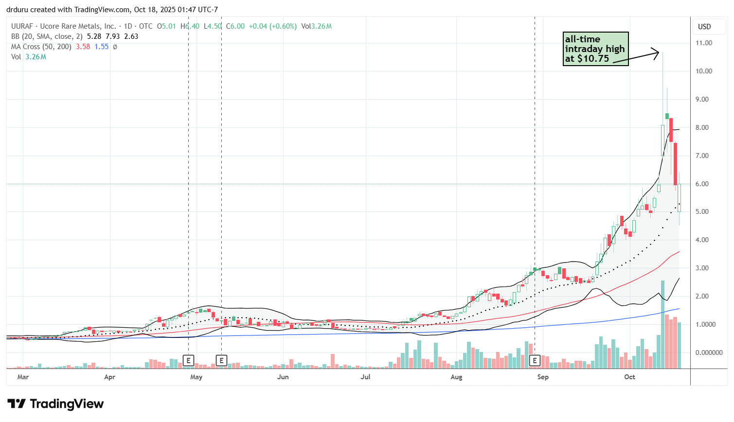 Technical status: UURAF fell to 20DMA support near $4.57 after a massive run from under $1 to over $10 earlier in the year.