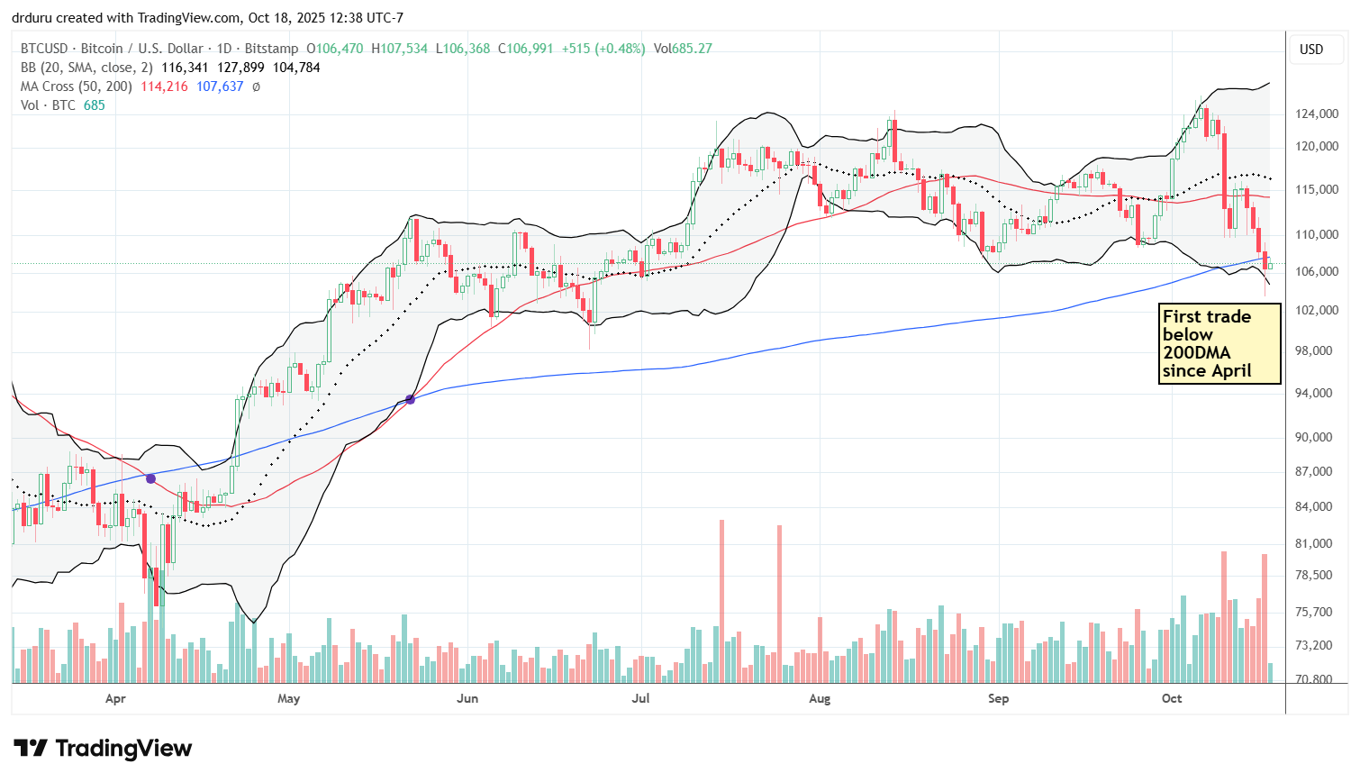 Technical status: Bitcoin fell below its 200DMA, ending a long uptrend and confirming risk-off sentiment.