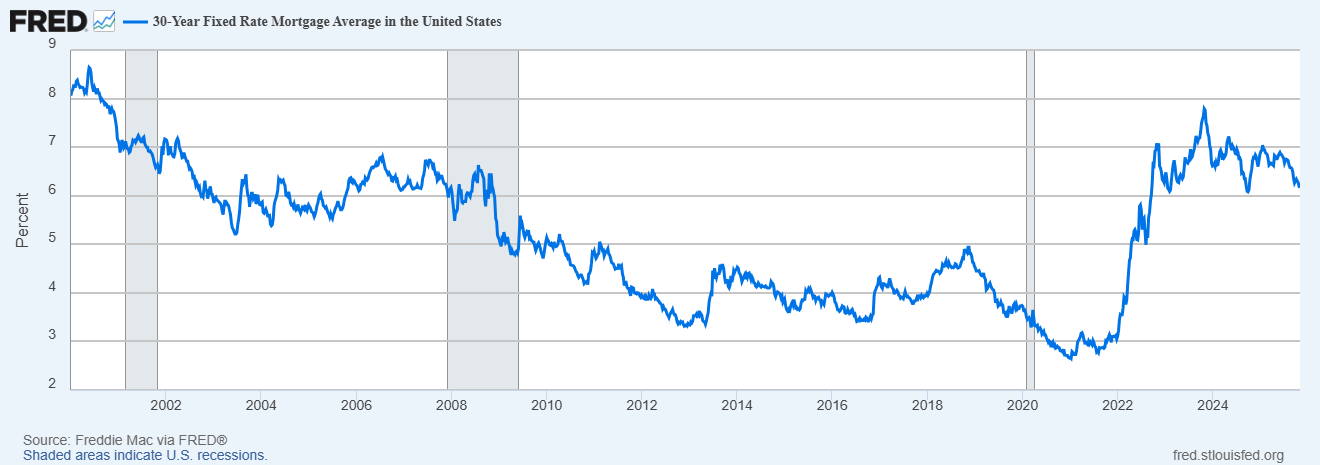 ![Freddie Mac, 30-Year Fixed Rate Mortgage Average in the United States [MORTGAGE30US], retrieved from FRED, Federal Reserve Bank of St. Louis; November 1, 2025](https://drduru.com/onetwentytwo/wp-content/uploads/2025/11/20251101_30-Year-Fixed-Rate-Mortgage-Average-in-the-United-States.png)