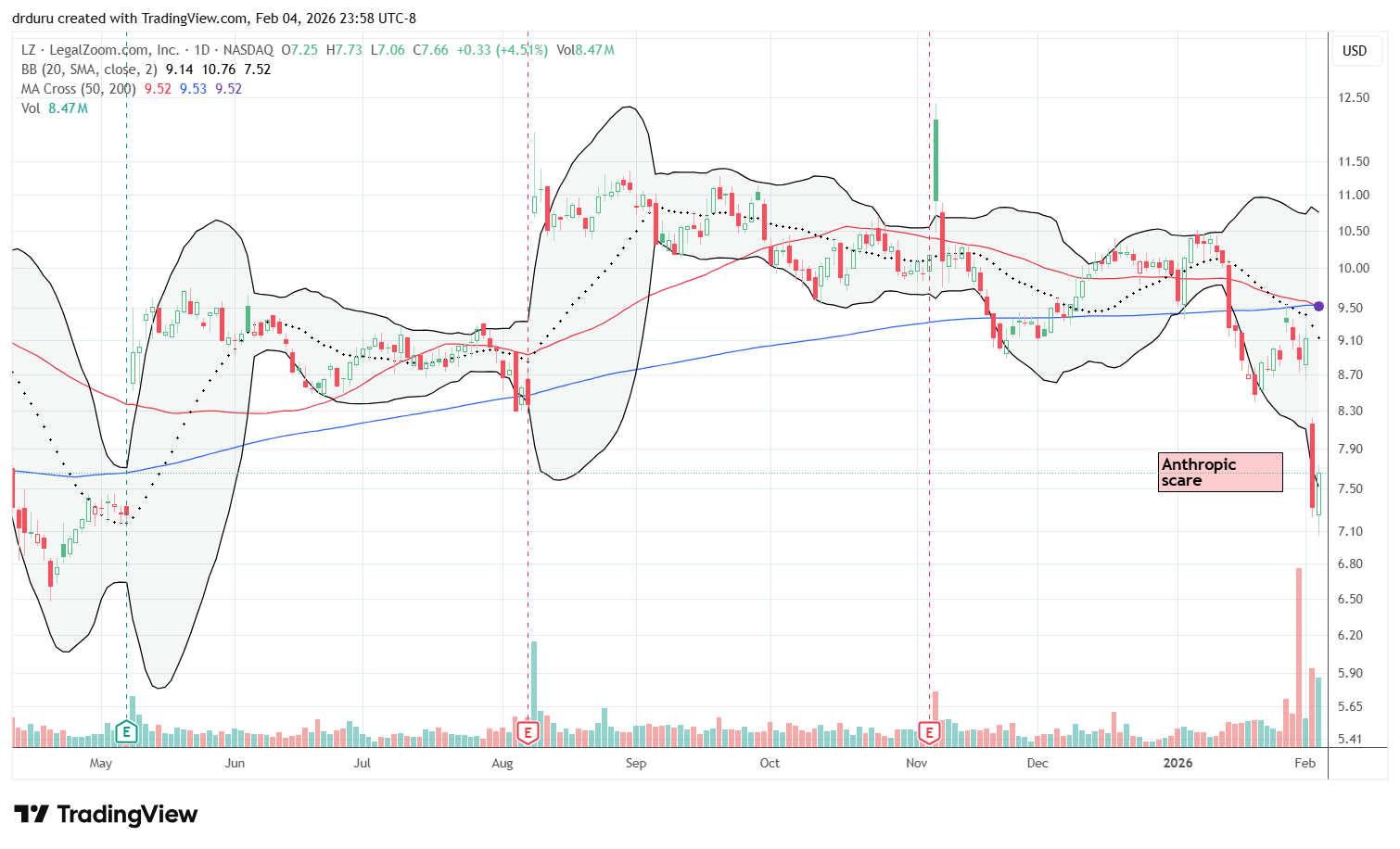 Anthropic released a productivity tool for in-house lawyers. The ensuing stampede out of related stocks plunged LegalZoom (LZ) by 19.7%, a crash that flashed me back to 2023 when I used a ChatGPT scare to buy up LZ on the cheap and later profit. I am back in accumulation mode and doubled down on my latest core holding. While I am still waiting for LZ to announce significant progress in using AI-related technologies to drive the business, this company’s years of experience in providing digital legal services fits Thoma Bravo’s description of a specialized software company likely to survive (and hopefully soon thrive) in this AI-driven panic.
