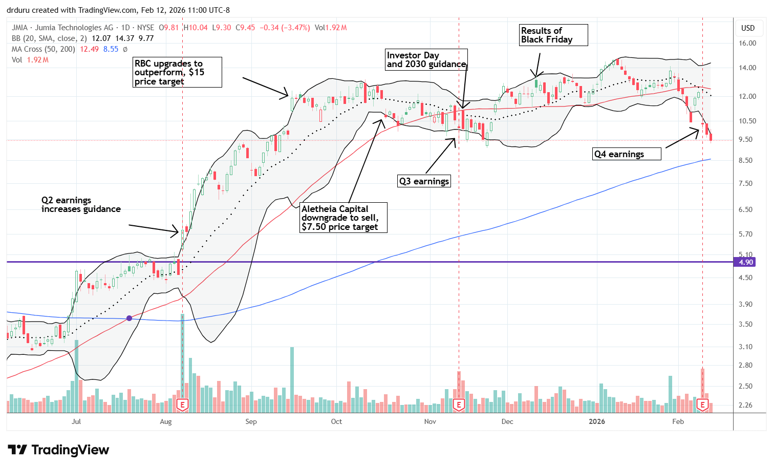 Despite the company’s operational achievements, the market reacted negatively to JMIA. The GMV guidance likely caused this latest bout of short-term disappointment. The stock gapped down from resistance at its 50-day moving average (DMA) (the red line in the chart below) for a 15.8% loss, followed by another 5.2% decline. I added shares on both days with a focus on continued directional momentum and evidence that the company’s enduring strategy continues to win. I will add shares again on a test of 200DMA support (the blue line) around $8.75 if sellers push the stock that far. Note that at the time of writing JMIA trades below its price after the stellar Black Friday results, reassuring 3 earnings, and a compelling Investor Day and 2030 guidance.