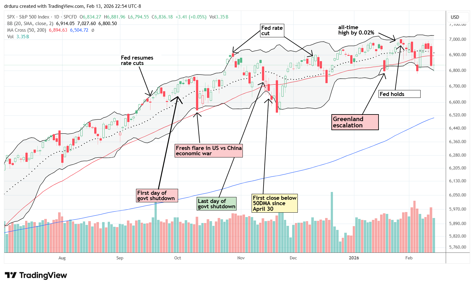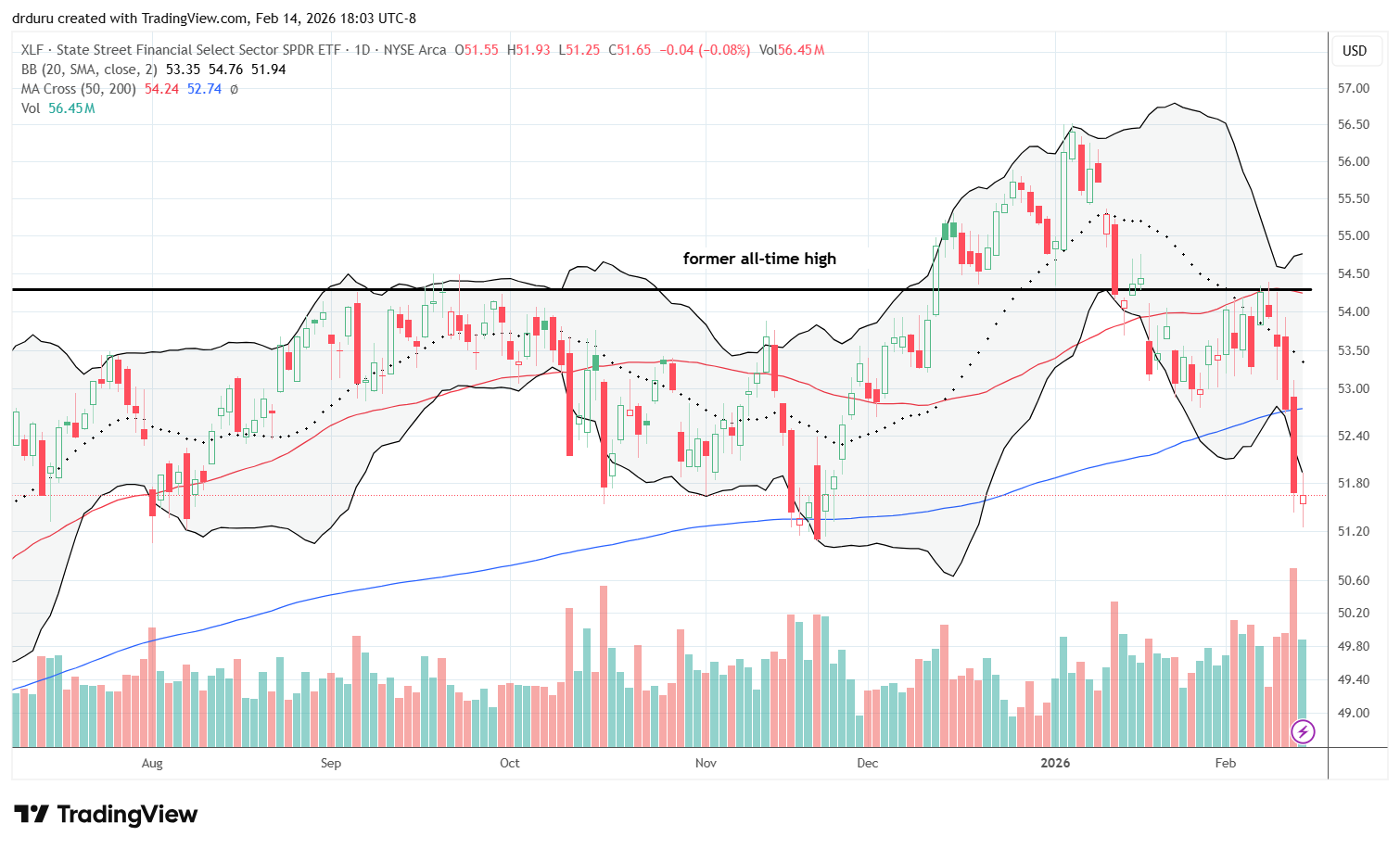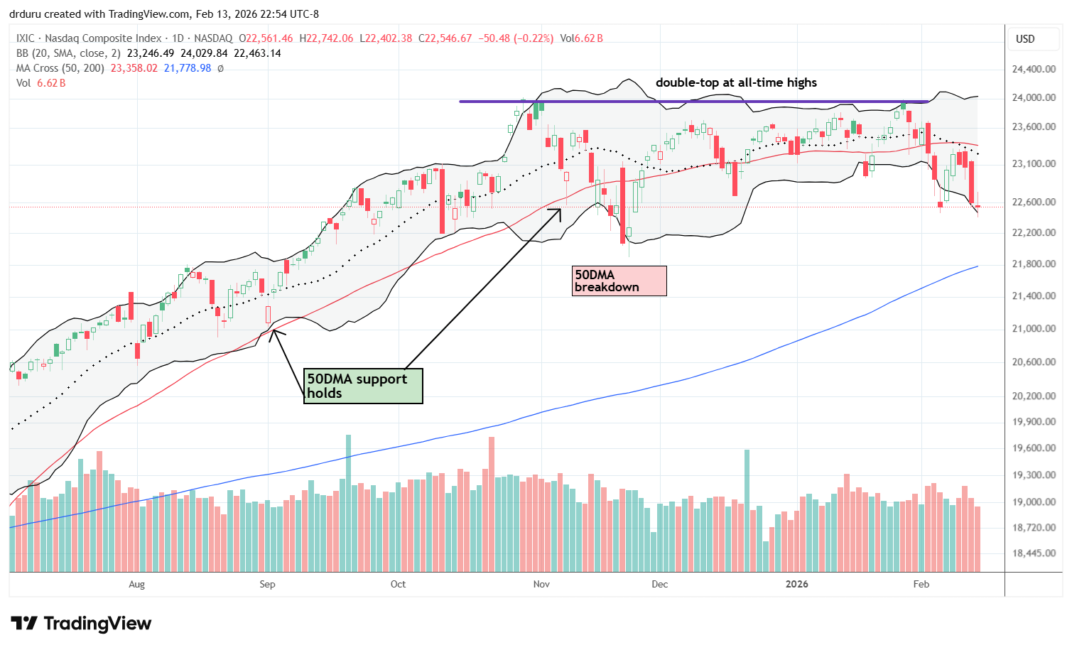 - Software stocks continue to break down technically as part of the SaaSpocalypse delivered by an AI Panic.