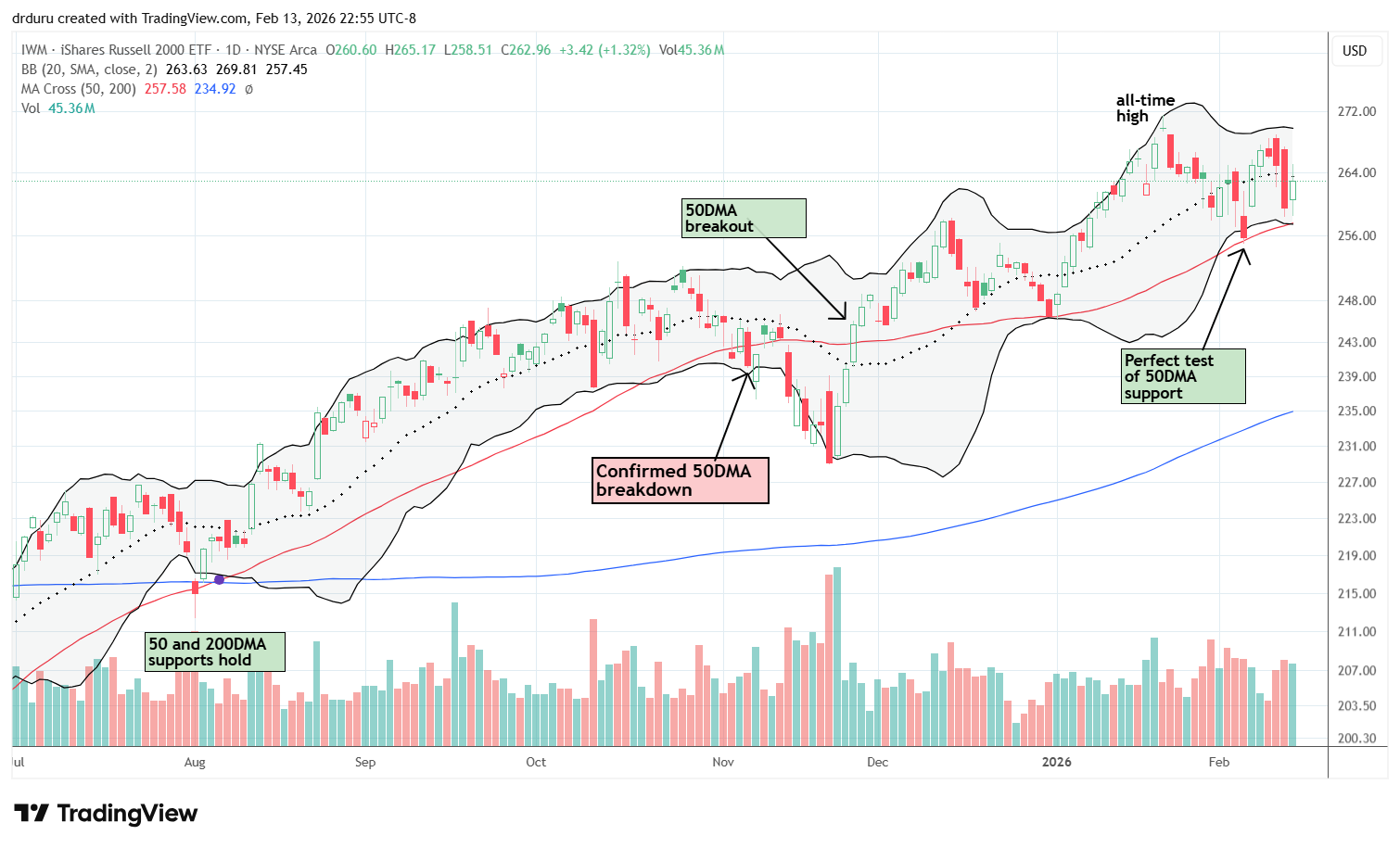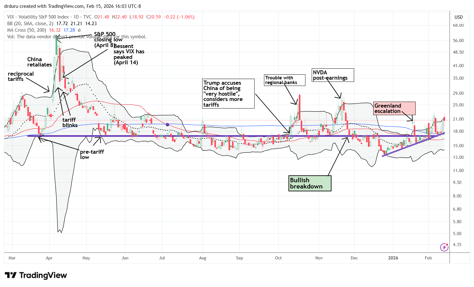 I examined the equal weight S&P 500 (RSP) as a point of comparison. The selling on Thursday was so bad that RSP had a rare big down day, dropping 1.3% (could it have been contagion from the AI-driven hit to trucking and logistics stocks?). However, on Friday RSP rebounded sharply with a 1% gain. RSP neatly maintained its uptrend on the 20DMA, a trend that has been in place all year. In other words, the S&P 500 is increasingly weighed down by tech stocks, especially the big cap tech stocks.
