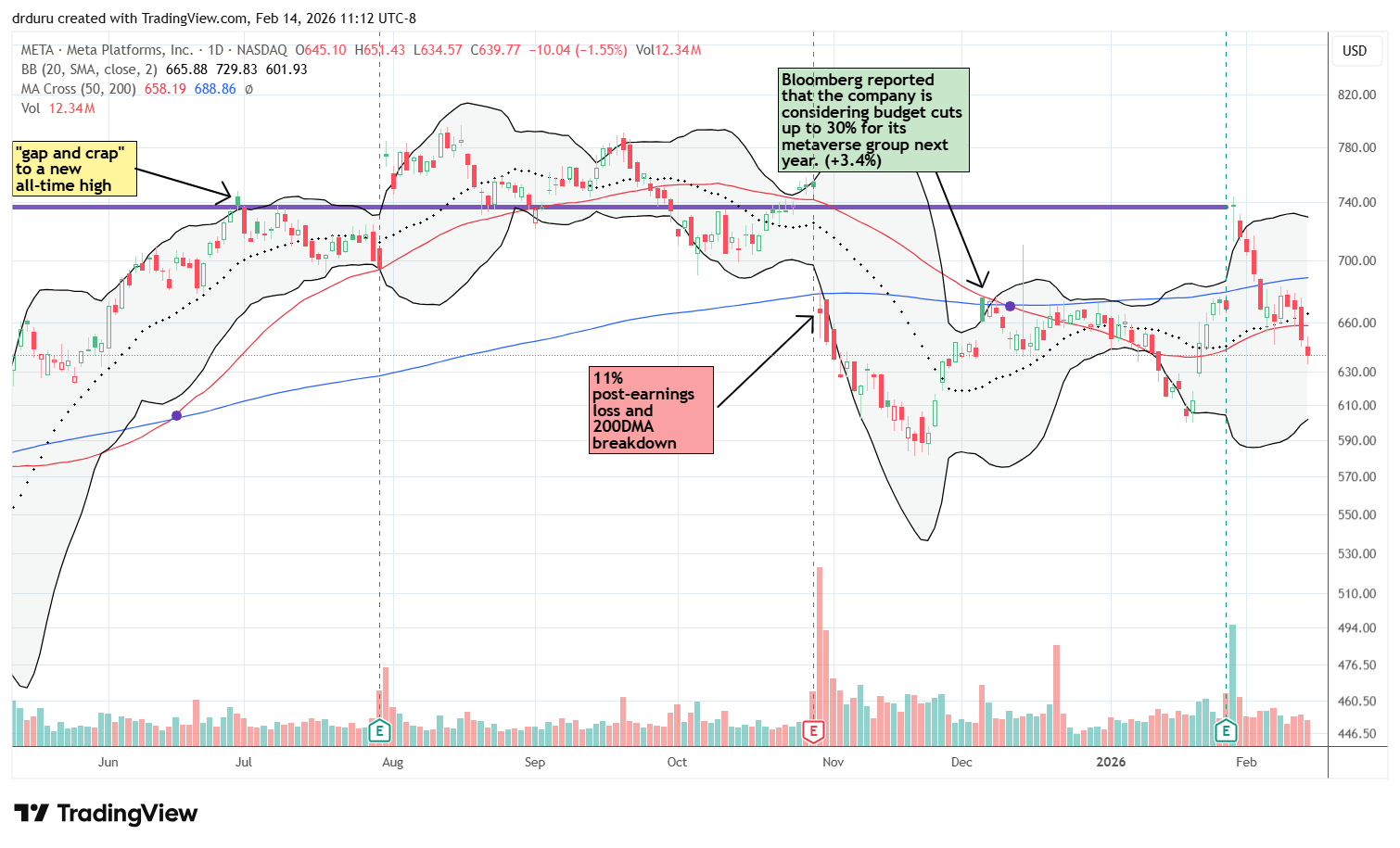 Technical status: Meta Platforms (META) confirmed a 50DMA breakdown and returned to bearish territory. The stock has been rangebound for about 17 months.