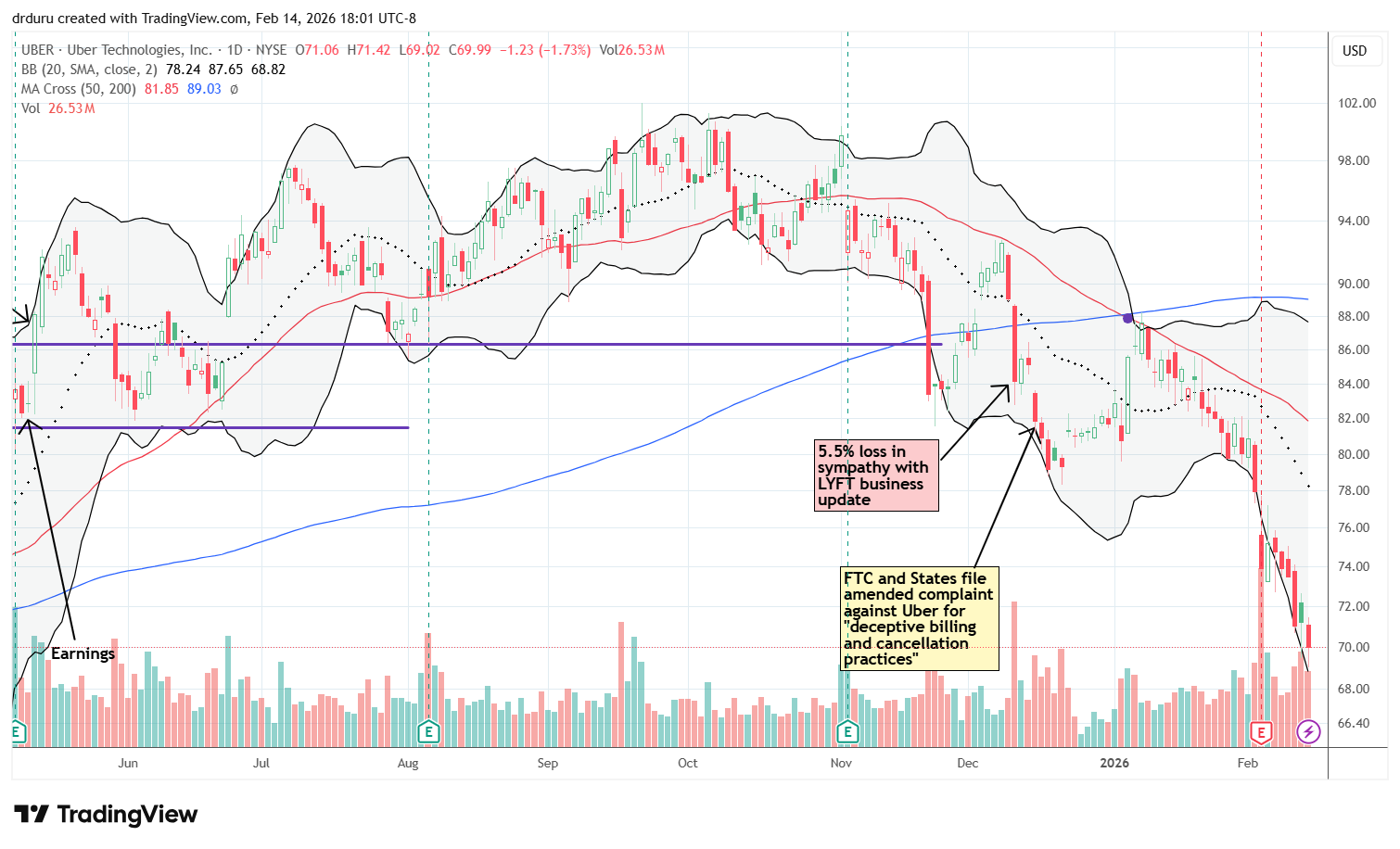 Trade commentary: I invested in UBER and insisted I was going to stick with UBER for the long term, but bearish technicals forced me out. Once again, the technicals proved prescient. The trading narrative on UBER has quickly flipped from bullish to bearish. With a major top in place, I have little interest in jumping back into UBER anytime soon.