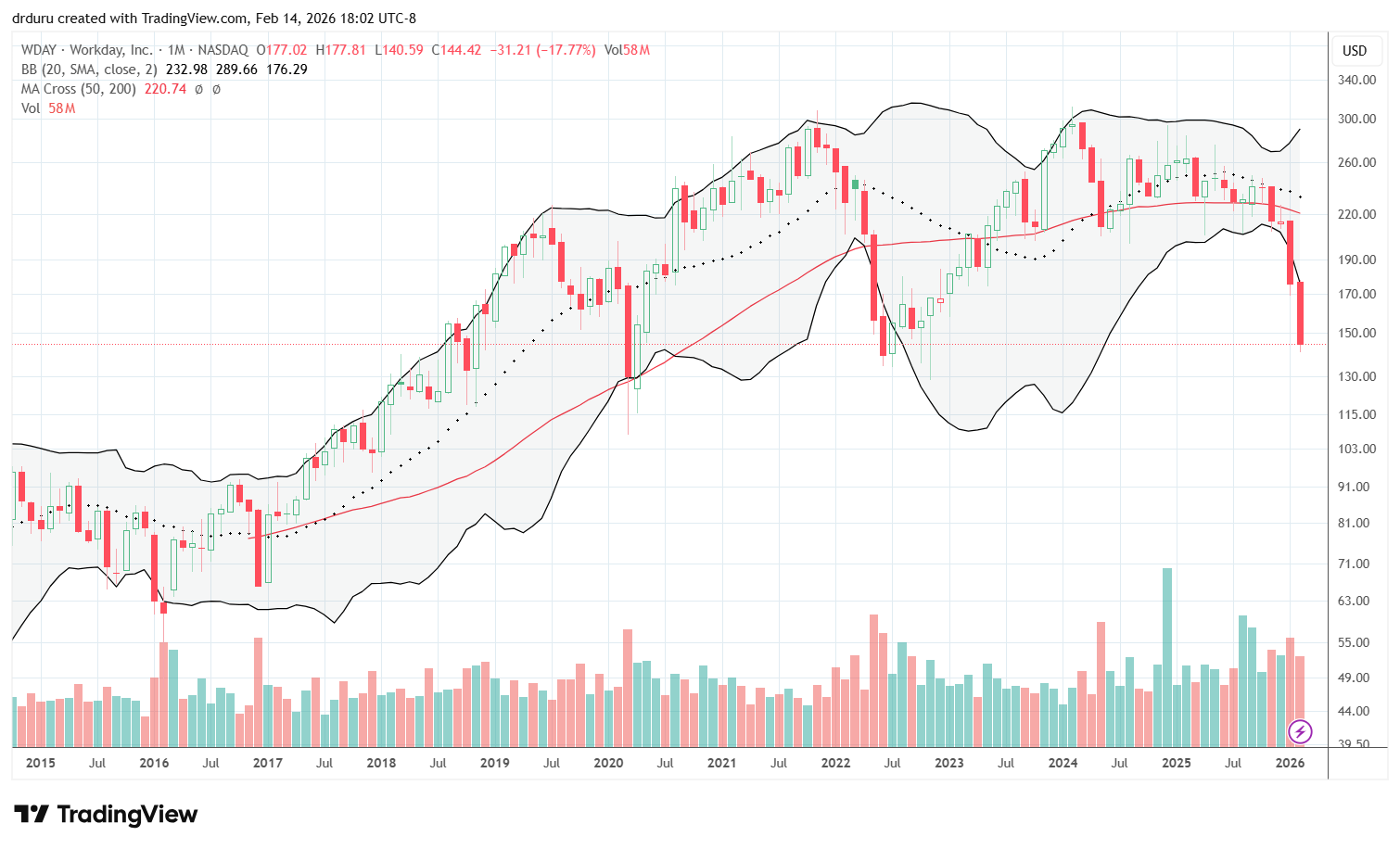 Trade commentary: WDAY has suffered a 32.8% year-to-date loss thanks to the AI Panic. Are traders and investors afraid a company will vibe code their way into a secure, regulatory-compliant HR platform? I eagerly await what WDAY has to say in its upcoming earnings report. Since WDAY started the year with a 7.8% post-earnings, I am bracing for a large post-earnings drawdown.