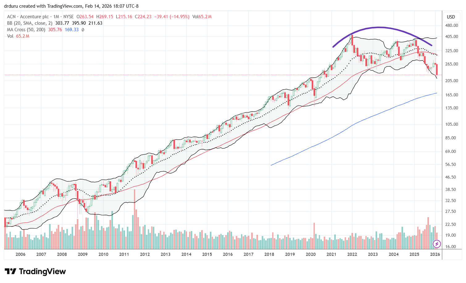 Technical status: After confirming a 50DMA breakdown with a 9.6% gap down, Accenture plc (ACN) traded straight down to a 5+ year low. The weekly chart shows an ominous, long-term topping pattern.