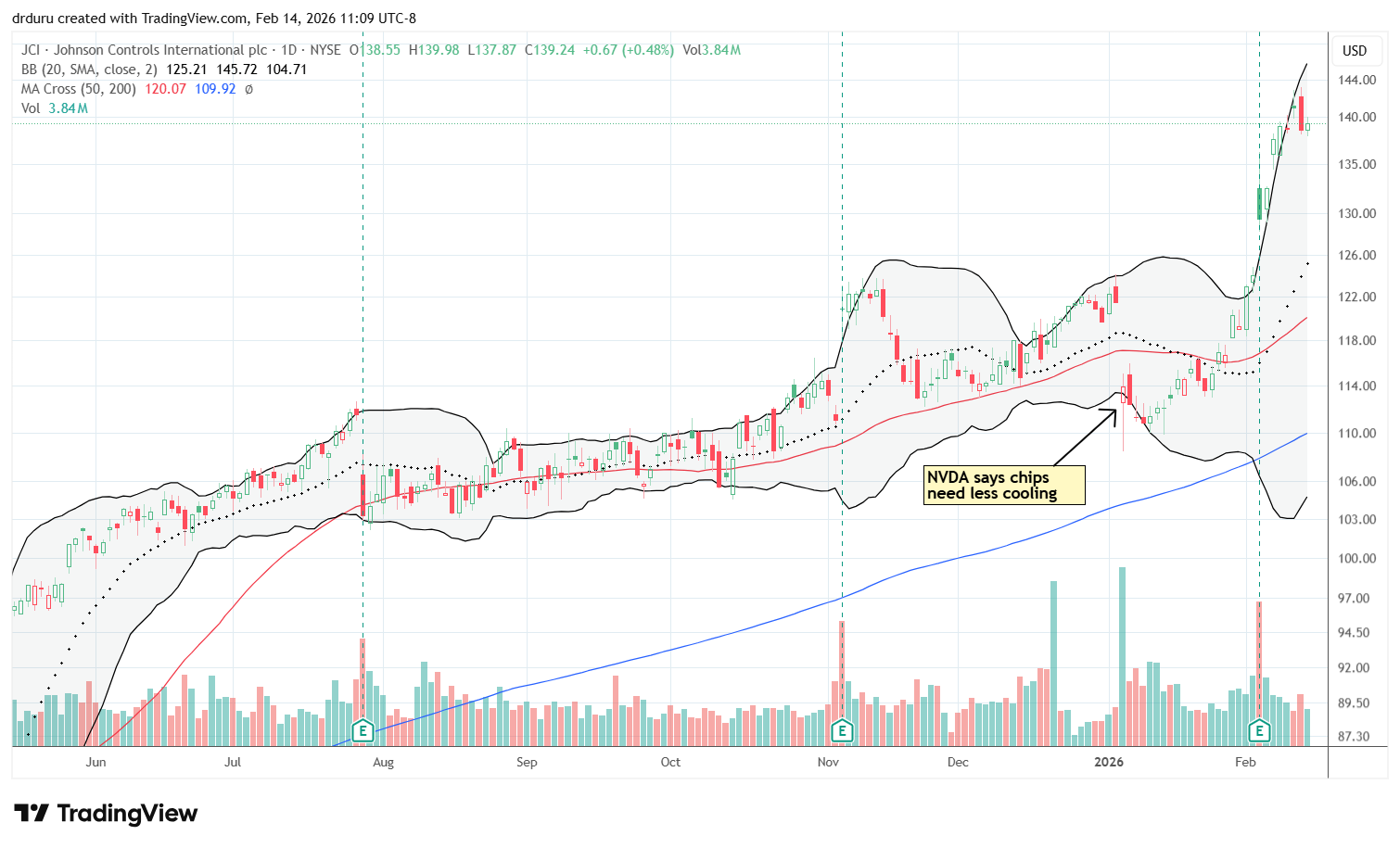Technical status: Johnson Controls (JCI) recovered quickly from an NVDA cooling panic. A 4.4% post-earnings jump helped the stock rally straight up to all-time highs.
