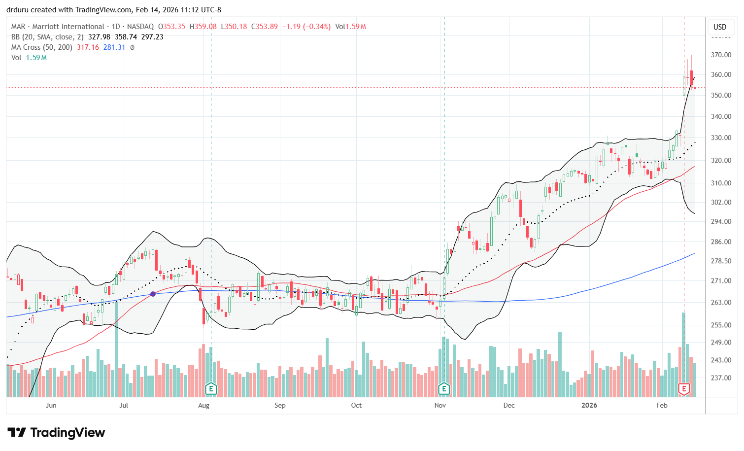 Technical status: Marriott International (MAR) surged to an all-time high after an 8.5% post-earnings gain.