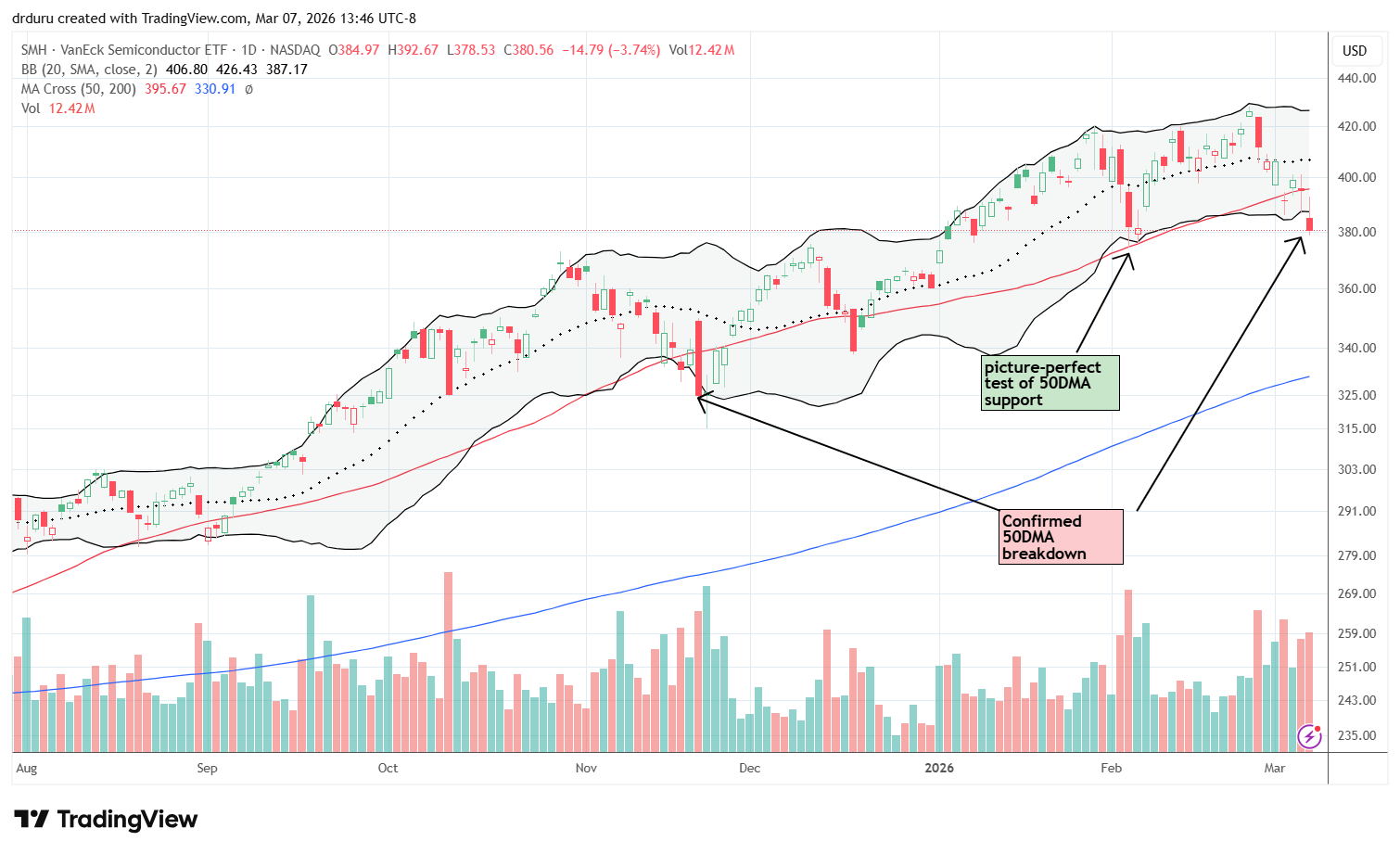 Technical status: VanEck Semiconductor ETF (SMH) suffered a 50DMA breakdown on news that Oracle and OpenAI ended plans to expand Stargate data center.