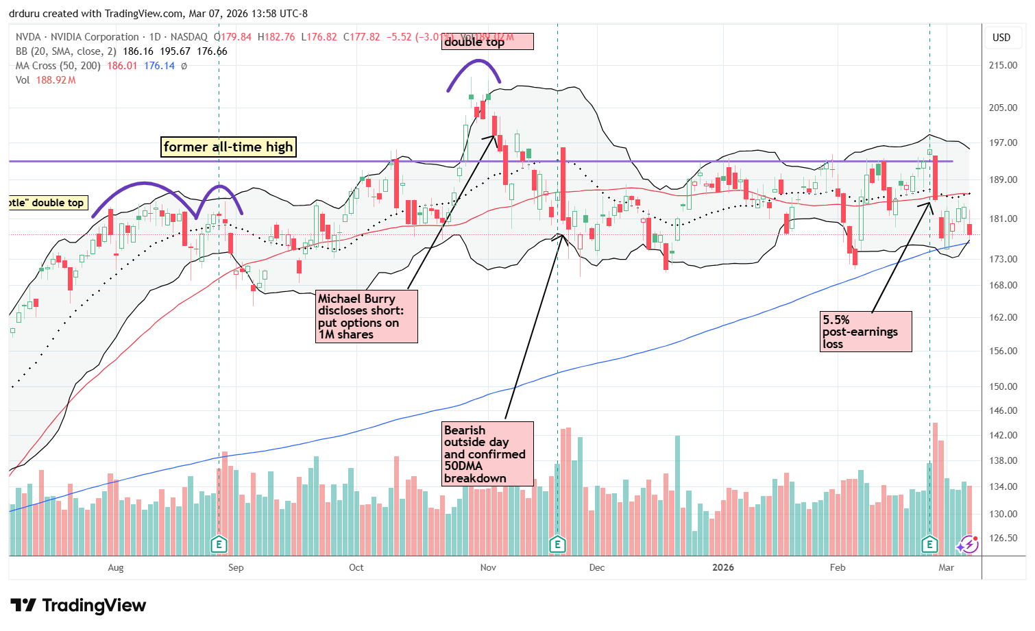 Technical status: NVIDIA Corporation (NVDA) started the week with a perfect test of 200DMA support but closed the week with a fresh test of support.