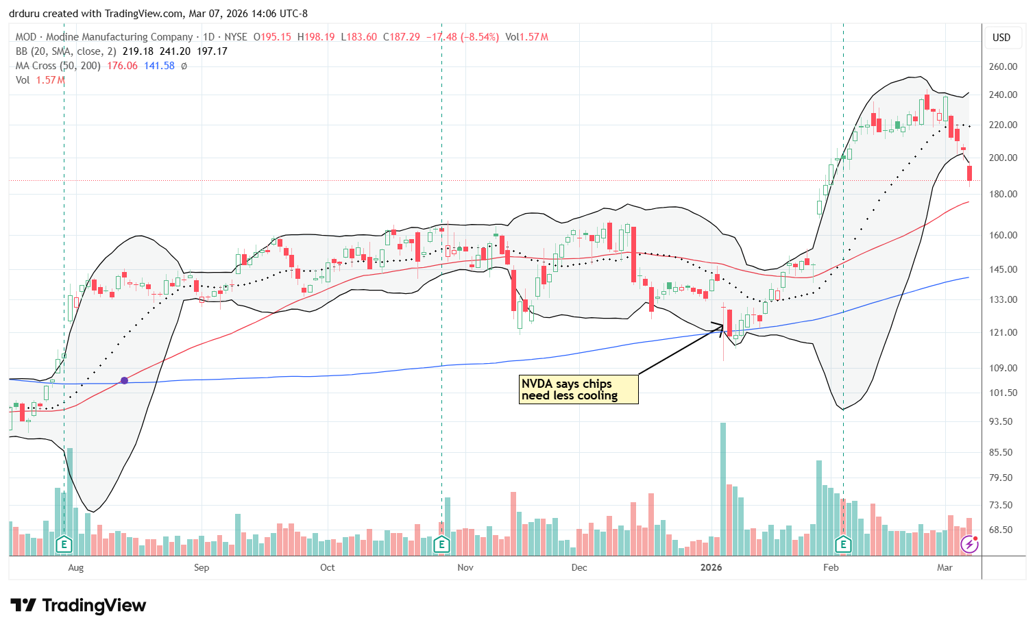 Technical status: Modine Manufacturing Company (MOD) sold off rapidly the last 4 days as the AI trade slows down and even tops out.