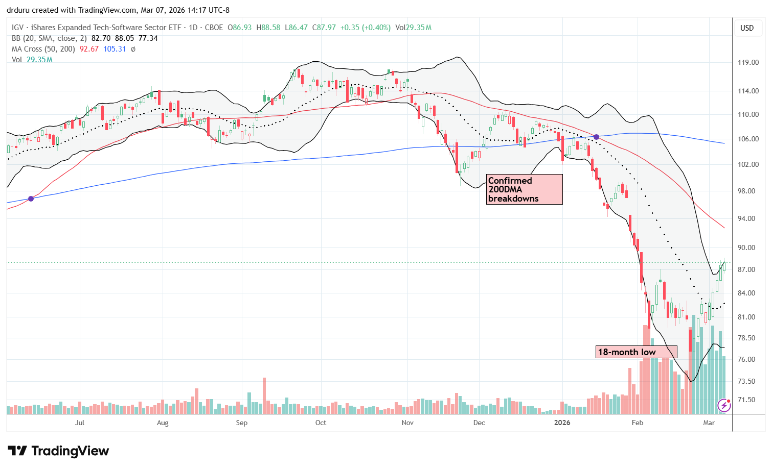 Technical status: The iShares Expanded Tech Software Sector ETF (IGV) has rallied in V-shaped fashion off an 18-month low and reversed all the losses from the last wave of AI Panic.